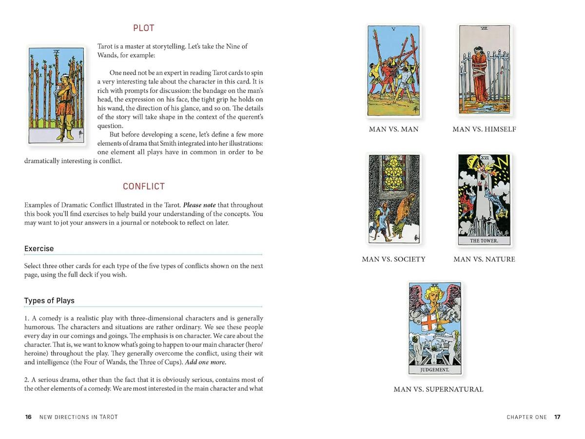 • Compares the Tarot Minors to technical elements of theater,including plot, conflict, elements of a play, thought/theme, dialogue, music, and actors’ positions on stage