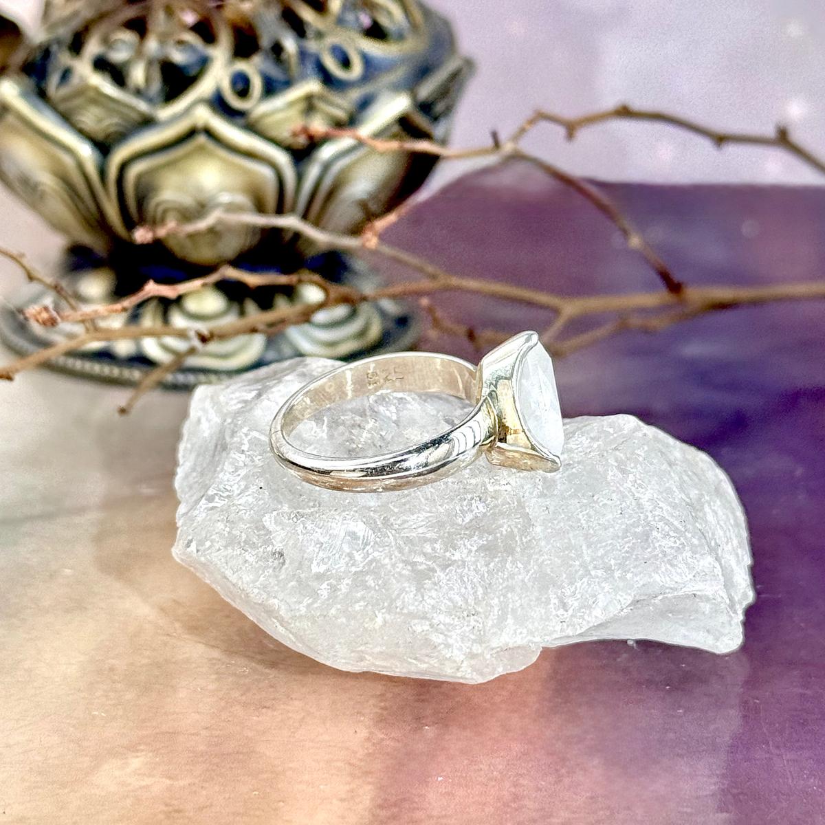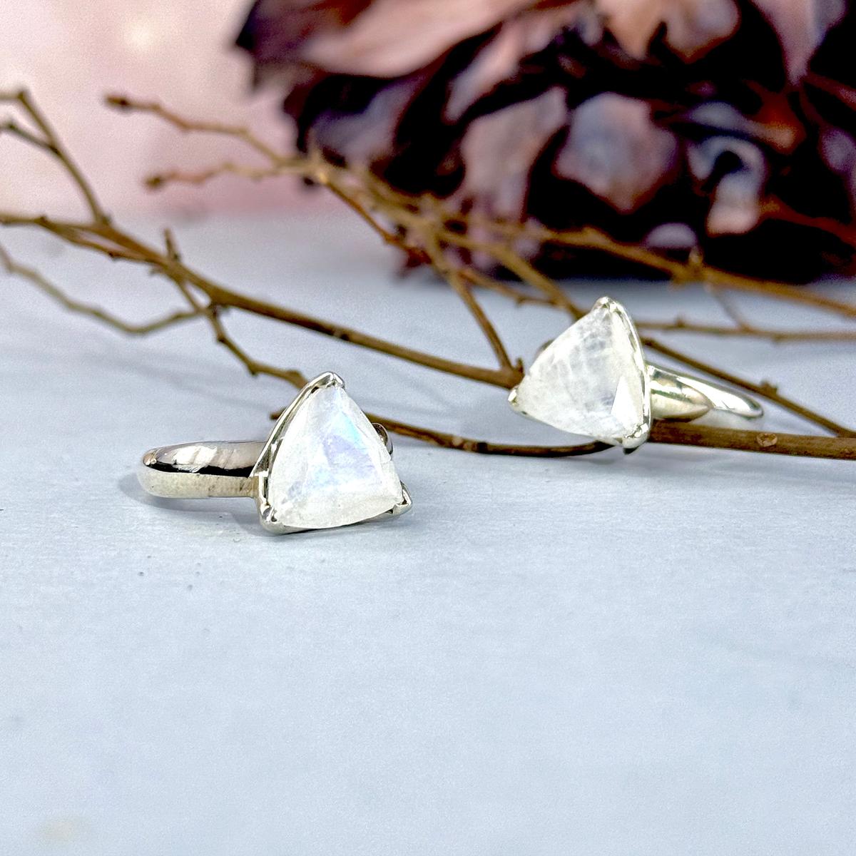 Rainbow Moonstone Trillion Cut Rings