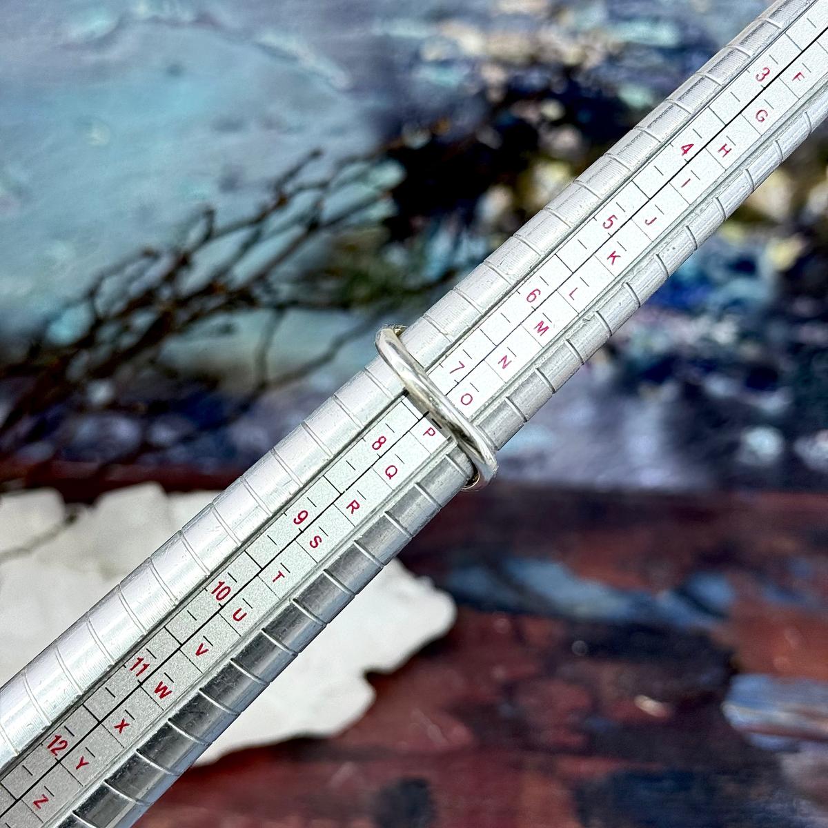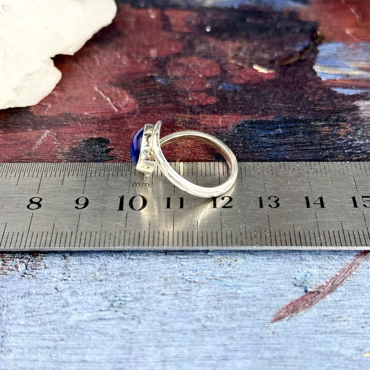 Stunning, high grade, side oval shaped Tanzanite cabochon, bezel set between a wave design Sterling Silver gallery and ring band. Size: 7.5/P