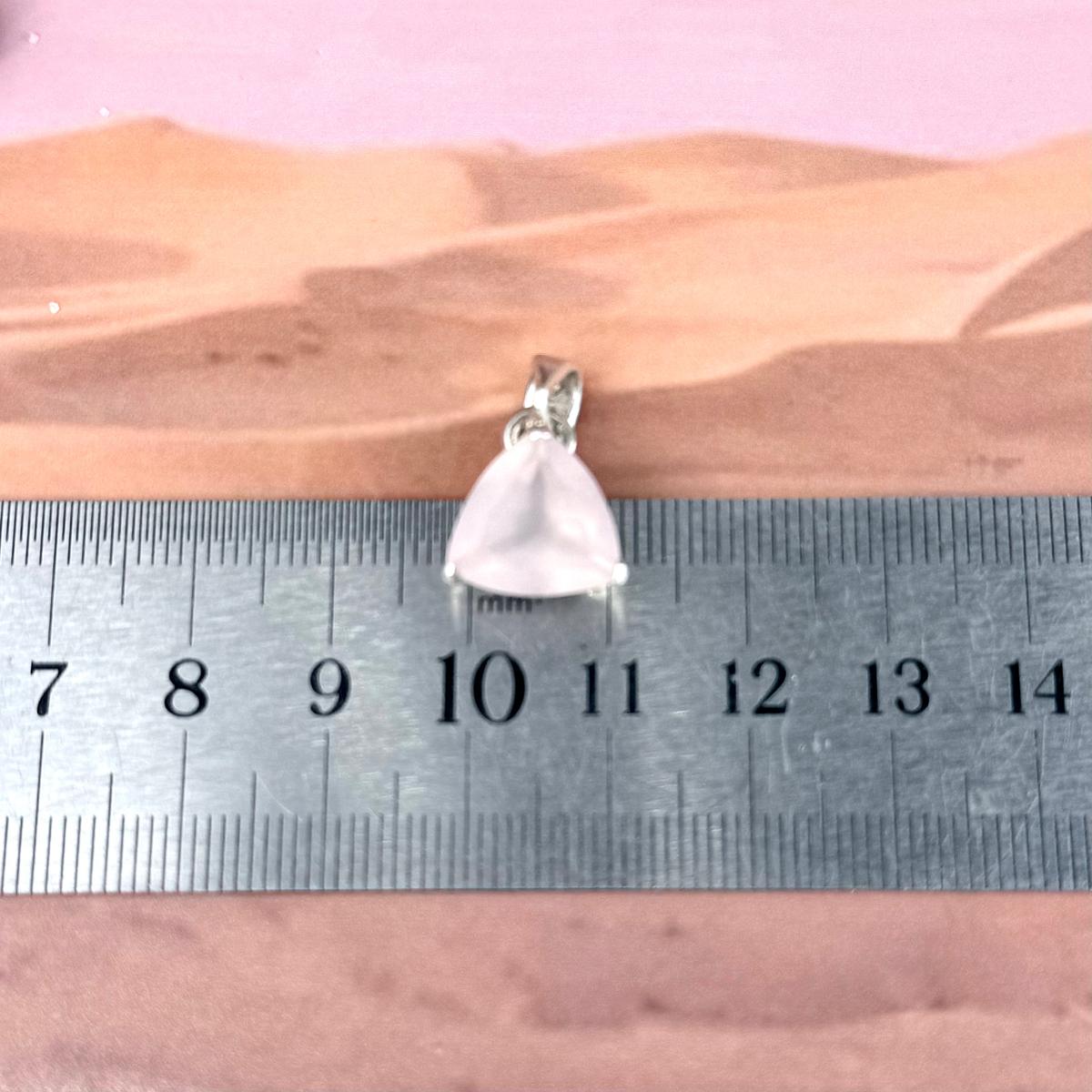 Elegant, trillion cut, soft pink Rose Quartz gemstone, claw set in a Sterling Silver pendant setting. Chain sold separately.