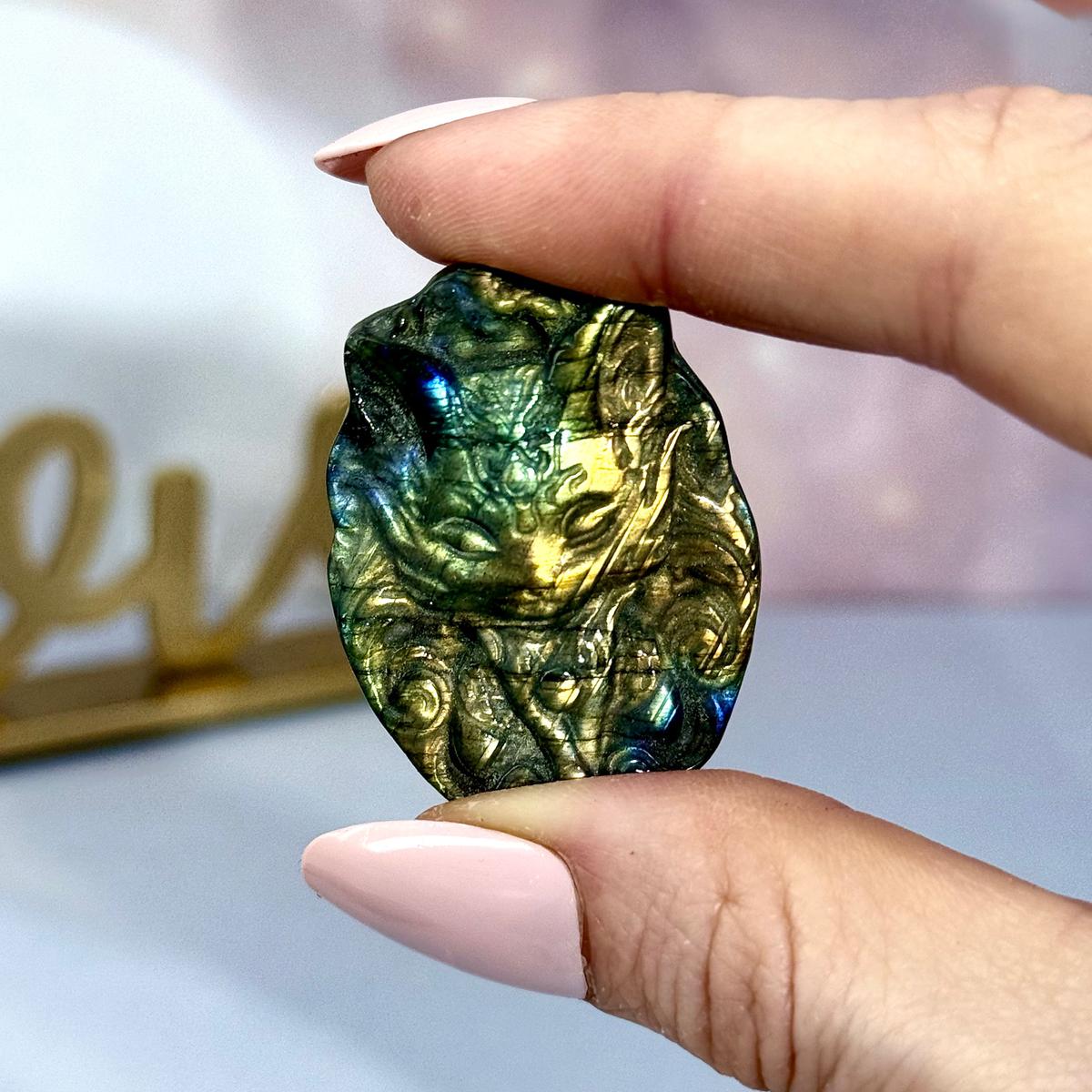 Labradorite is helpful in matters of magic and divination. It protects and strengthens your inner energy. Labradorite connects you to your intuition and higher self, building a bridge between your earthly and spiritual self.