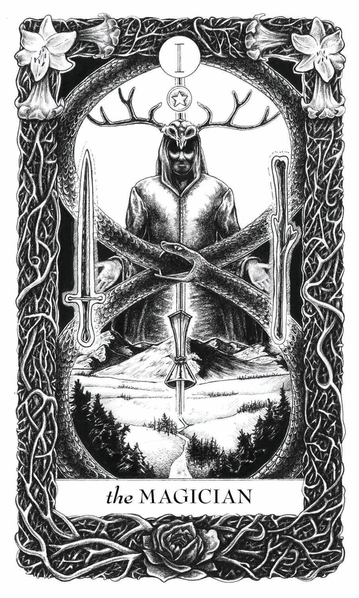 Lieselle’s Eternal Tarot features a skillfully rendered Major Arcana based on the Rider-Waite-Smith and traditional pip-style minors sketched in stunning detail by artist Sean Frosali. Each pip-style minor is labeled with a “mantra,” a short phrase reminding readers of the card’s primary interpretation.